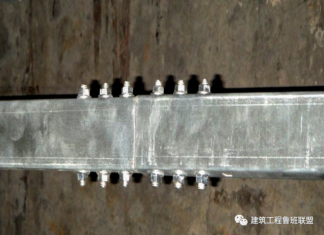 鍍鋅槽盒本體間連接板的兩端不跨接接地線,但連接板兩端不少于2個(gè)有防松螺帽或防松墊圈的連接固定螺栓。